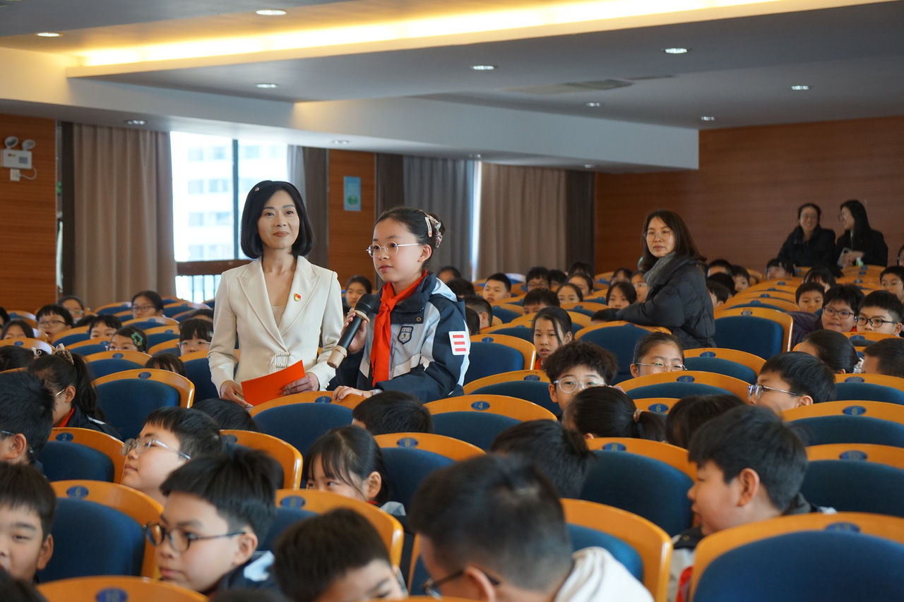 在随后的讲座环节,浙江省心理健康A证教师金新老师以《策马,悦心启程》为题,引导孩子们认识情绪、悦纳自我,树立积极向上的心理状态。市人民检察院干警王磊则以预防校园欺凌为主题,深入浅出地讲解了如何识别、应对欺凌行为,鼓励学生勇敢说“不”;市公安局交警大队副中队长郭威结合实际案例,普及交通安全知识,强化学生出行安全意识;市人民法院法官助理陈玥蓉围绕《中华人民共和国民法典》中未成年人权益保护条款,带来贴近校园生活的法治宣讲。