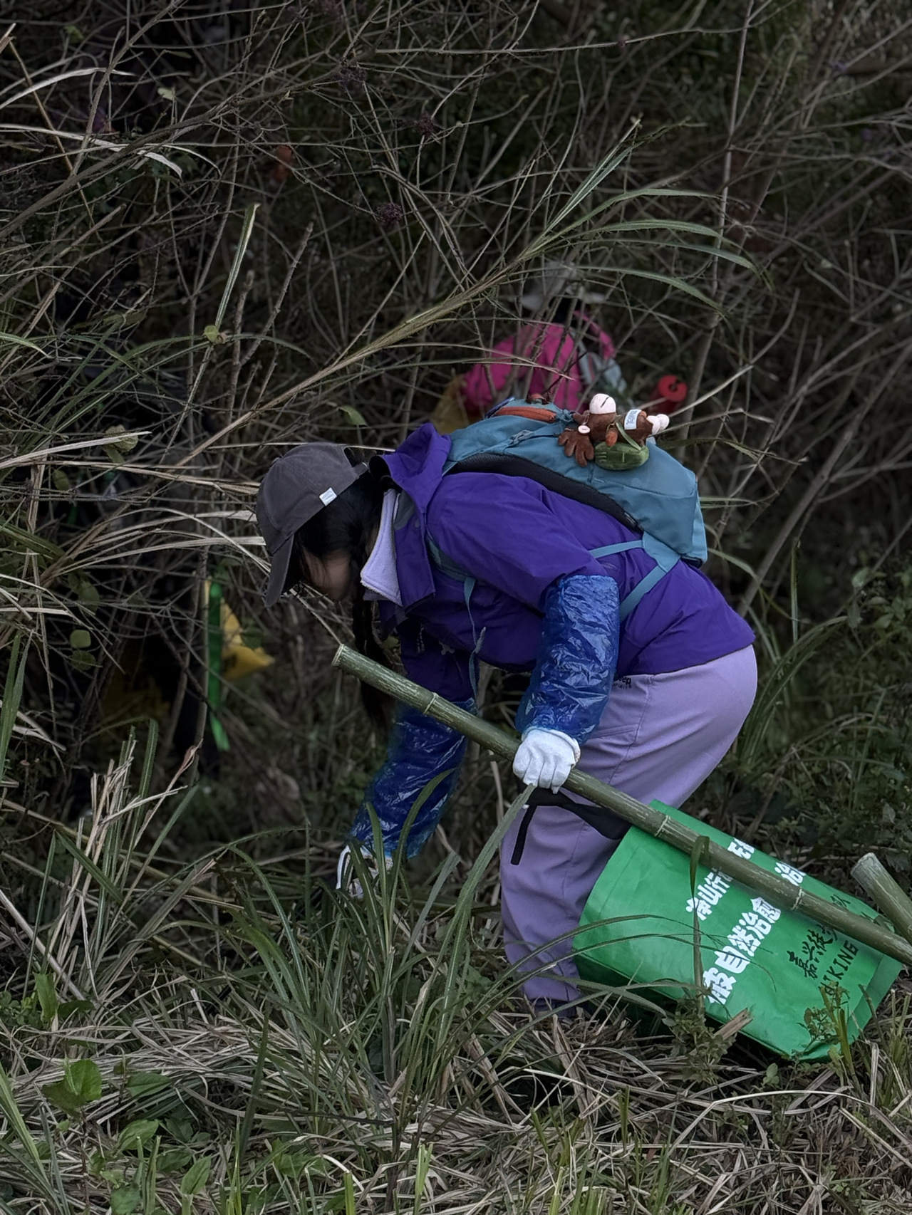 一根竹竿挑起的,不只是垃圾,更是“无痕山野”的理念。