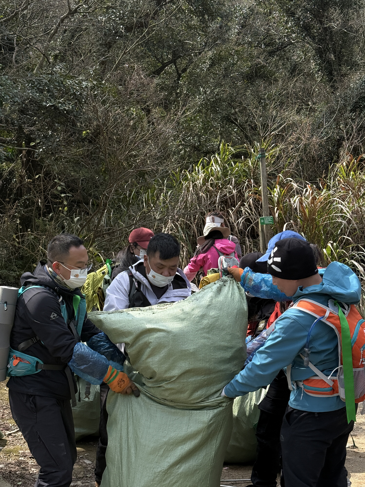 “当时山上还下着雨,海拔1500多米的山路陡坡众多,11个人捡了120多袋、2000多斤垃圾,女生扛4袋。男生扛得更多,大家腿都抽筋了,却没有一个人放弃。”江玲红说,净完山当晚连夜回台州,第二天一早到家洗个澡,又匆匆出门上班了。