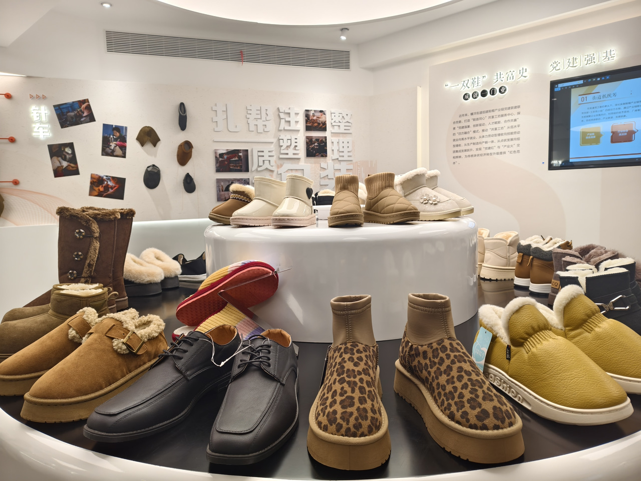 新生代创业者的加入,为产业注入新活力,更打破了雪地靴的季节性局限。年轻经营者聚焦产品创新,融入时尚设计,推出发热雪地靴等新品,推动产品从保暖向时尚转型。留学归来的创业者带头试水跨境电商,依托南半球反季需求,实现全年生产无淡季,日均发货量稳定。在其带动下,20 多家企业拓展跨境业务,当地建成多个共享直播间与工厂直播间,联动八大跨境电商平台搭建直播矩阵,每周直播超 45 场,线上销售额持续增长。