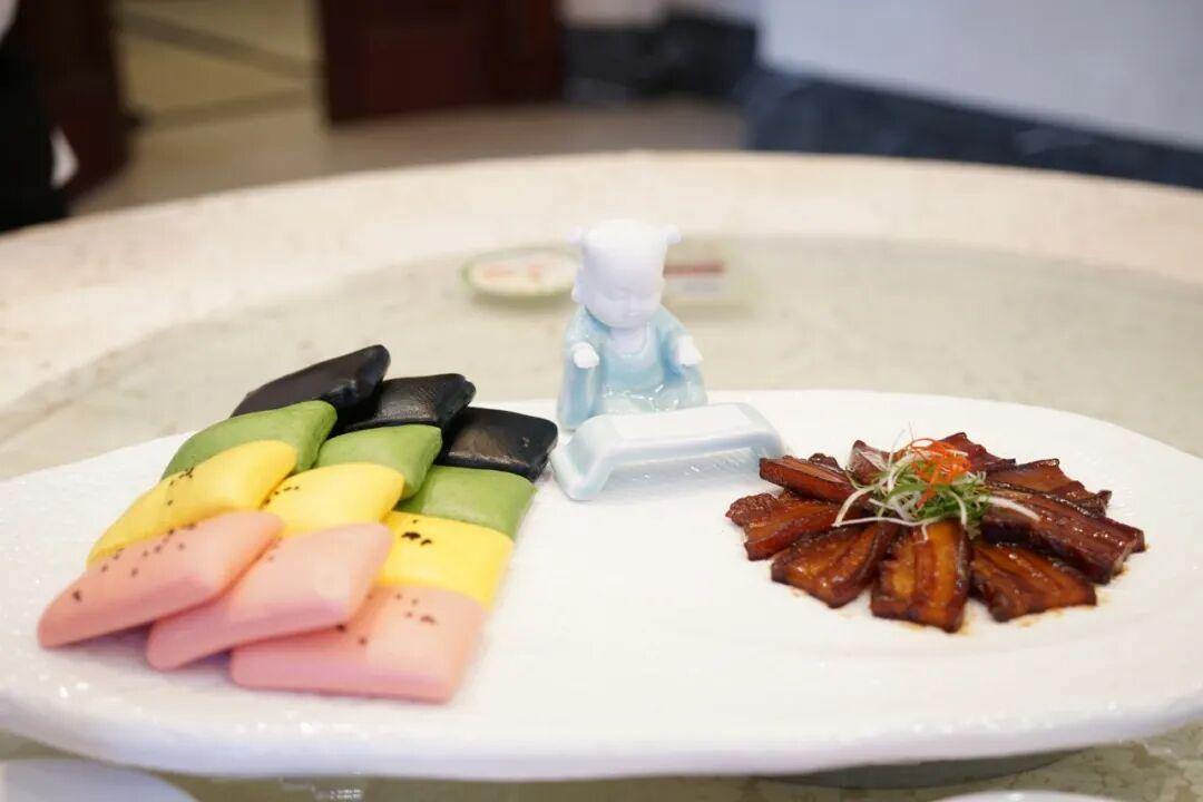 除了海鲜,还有山珍。仙居安洲宴,深入挖掘“百县千碗”所承载的地方文化与历史传承,推出了以四道冷菜、十道热菜、两道点心组成的“仙居瑶池宴”。每道菜品,都藏着一段文化、一个典故。如“葛玄碧绿三黄鸡”,将仙居鸡与仙居茶创意结合;“四方神君遇钟离”,则是“仙居八大碗”中的钟离翻碗肉的升级演绎,搭配当地特色小吃麦脸,并创新融入仙居杨梅的酸甜口味。