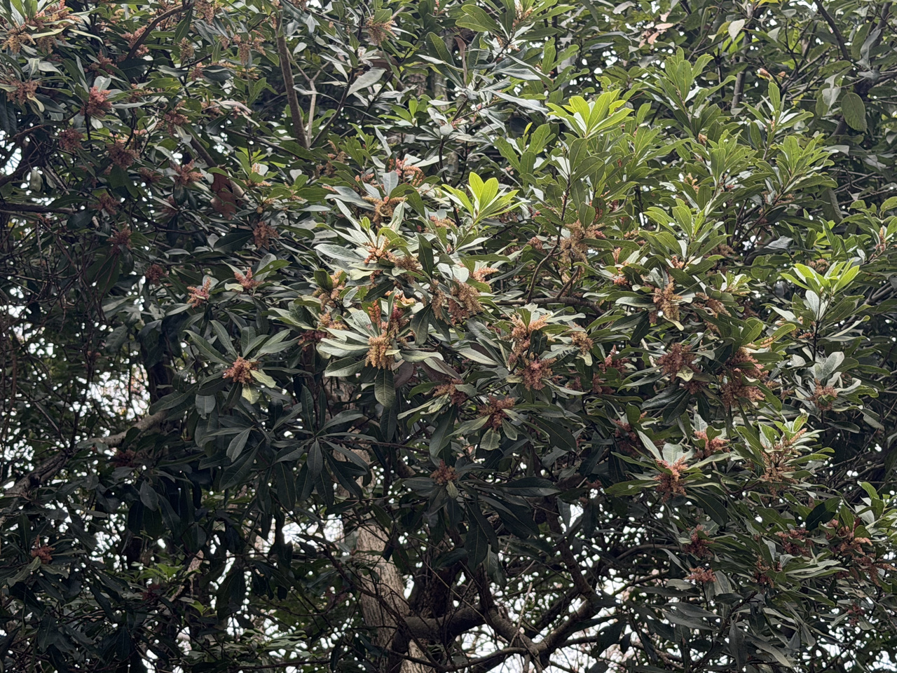 在这片杨梅林中,最高的一株野生杨梅树高达15米以上,树干地径达50—60厘米,一个成年人张开双臂都难以环抱,冠幅更是宽达15米。值得一提的是,这棵树上的雄花长势旺盛,眼下正值杨梅授粉期,它可帮助周边30公里内的仙居杨梅树完成授粉。