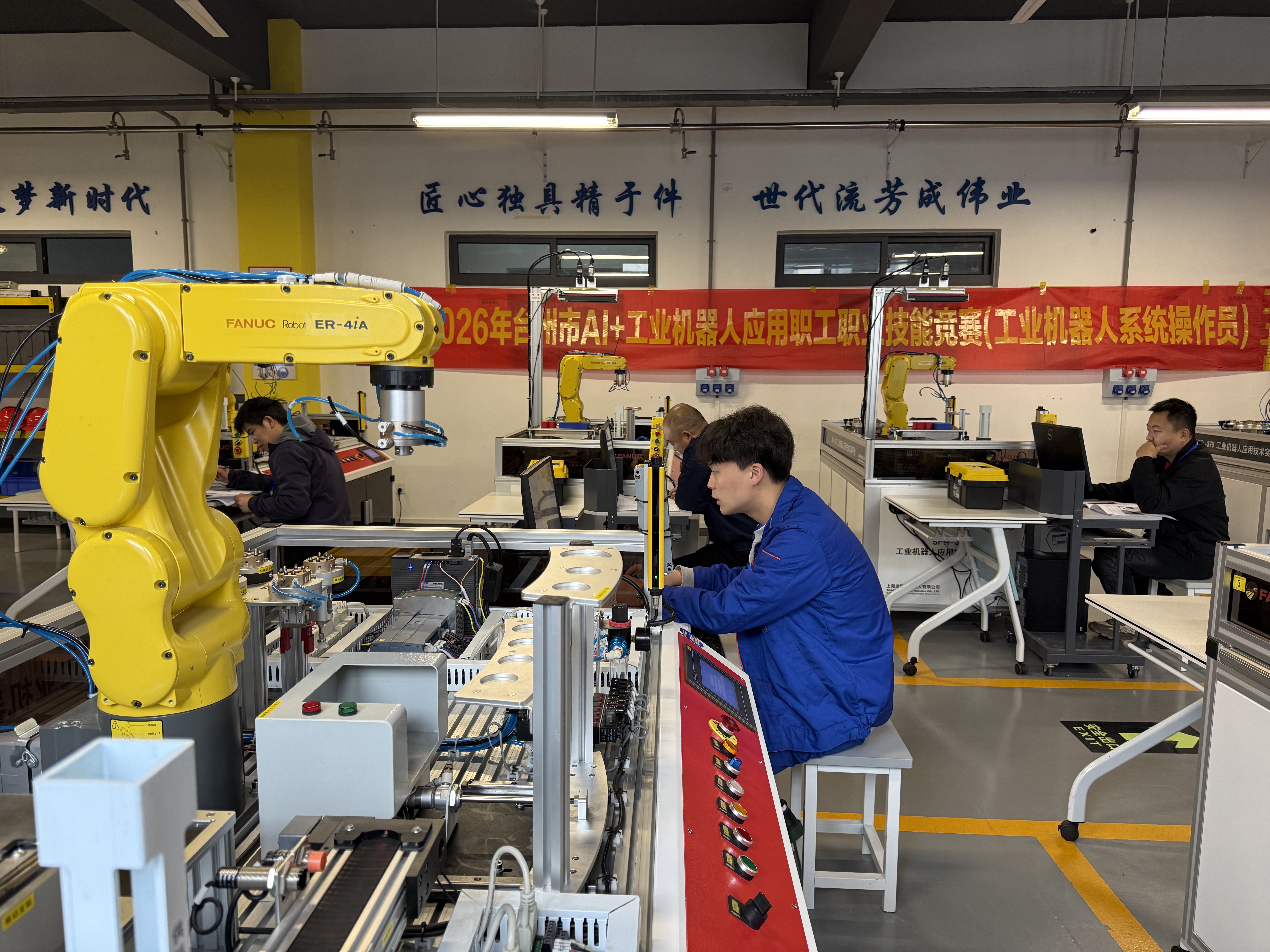 3月27日,台州市第二届“匠心杯”全市职工职业技能竞赛在台州技师学院开赛。作为首个比赛项目,AI+工业机器人应用职工职业技能竞赛也同步启动,来自全市各行业的技能人才齐聚台州湾新区,同台竞技、切磋技艺。