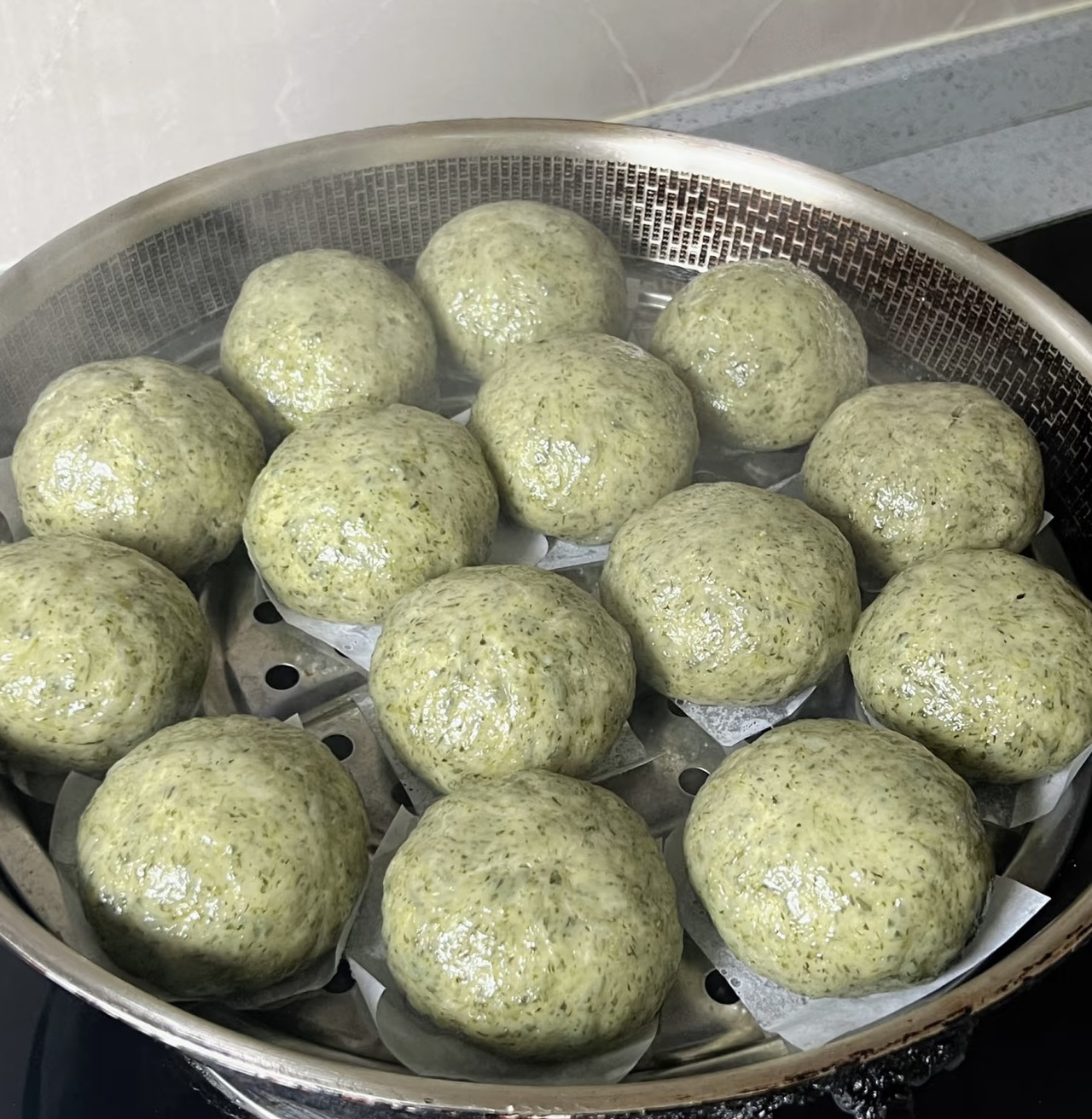 吸引顾客们的这份“鲜”和“糯”,源自师傅们当天手工现包的品质风味。每天凌晨5点多,师傅们就已经开工,备菜、揉面、包馅、蒸熟……经过一道道工序,一只只包裹着丰富馅料的碧绿团子出炉,香气四溢,来到顾客手中的时候还带着温热。