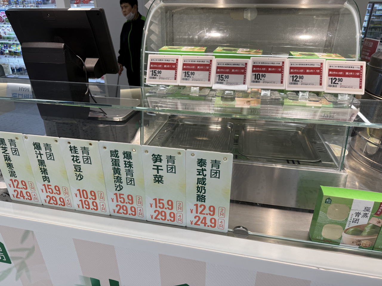 “市民可随心搭配,品尝多种口味,价格从6.9元至23.9元不等。”客服经理林丽说,随着清明临近,青团销量稳步上升,这一周销售额在1.1万元左右。