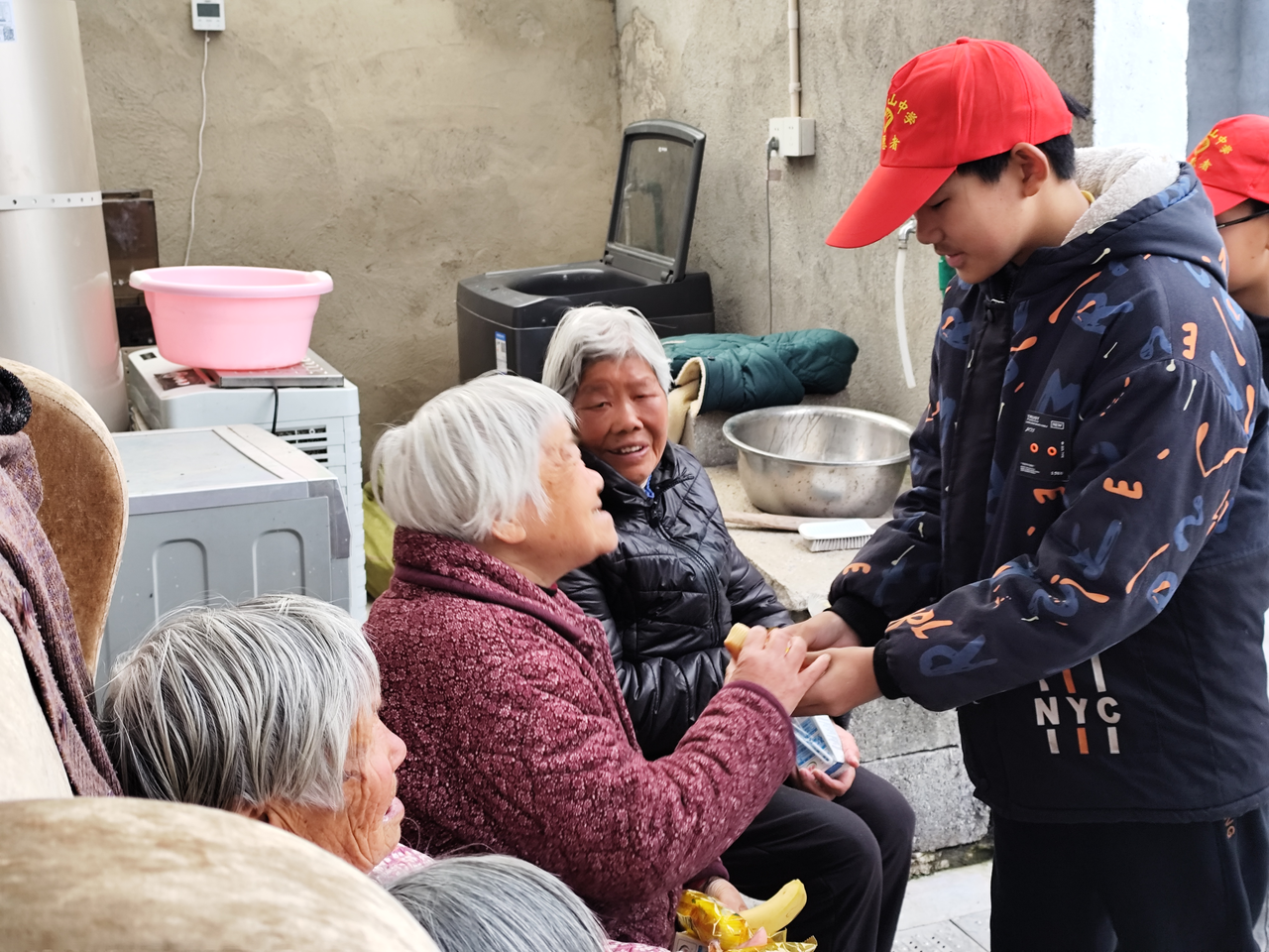 慰问物资分发完毕后,志愿者们分组开展的志愿服务,成为德育实践的核心课堂。有的同学围在老人身边,耐心倾听他们讲述烽火岁月的奋斗故事、田间地头的生活阅历,时不时点头回应、轻声叮嘱“保重身体”,在倾听中感悟老一辈的家国情怀与坚韧品格;有的同学主动为行动不便的老人捶背揉肩、捏脚按摩,从一开始的略显生疏到后来的熟练细致,在肢体接触中体会“老吾老以及人之老”的共情之心;还有的同学拿起抹布擦拭门窗桌椅,整理老人的生活用品,在劳动中培养责任担当与奉献意识。“张爷爷,您年轻时候参与修水库的故事太感人了,我们现在的幸福生活真的来之不易!”七年级学生李同学一边为老人捶背,一边分享自己的感悟,“以后我要多帮家里做家务,多来看望爷爷奶奶,把敬老爱老的道理落到实处。” 活动现场,同学们用实际行动诠释着德育教育的成果,院落里、房间内涌动的温情,成为最生动的德育教材。