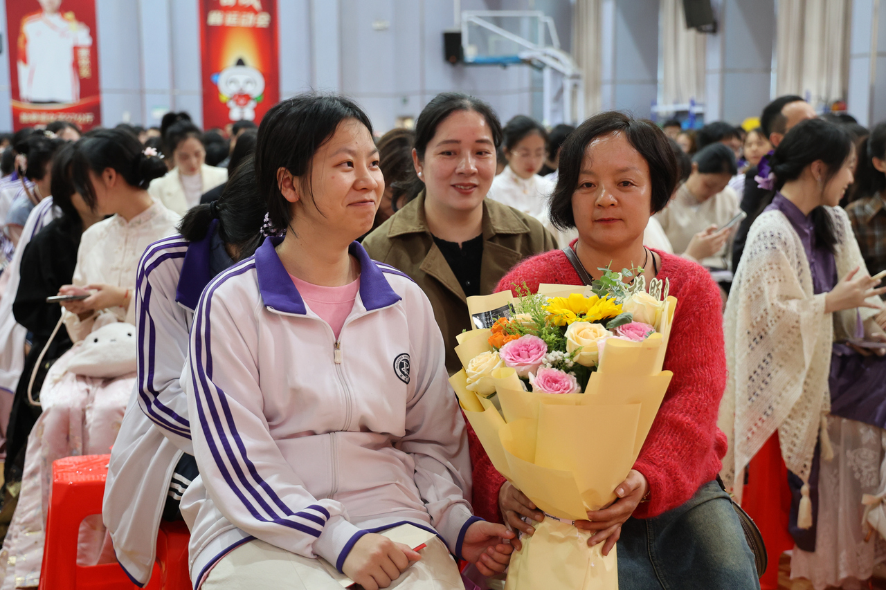 莞尔韶华,奕奕容光;弱冠既加,如之栋梁。在活动现场,一个写有“时光筑梦,青春加冕”字样的拱门矗立在校园体育馆大门口。精心打扮的学生们在各自父母的陪同下,一一穿过。