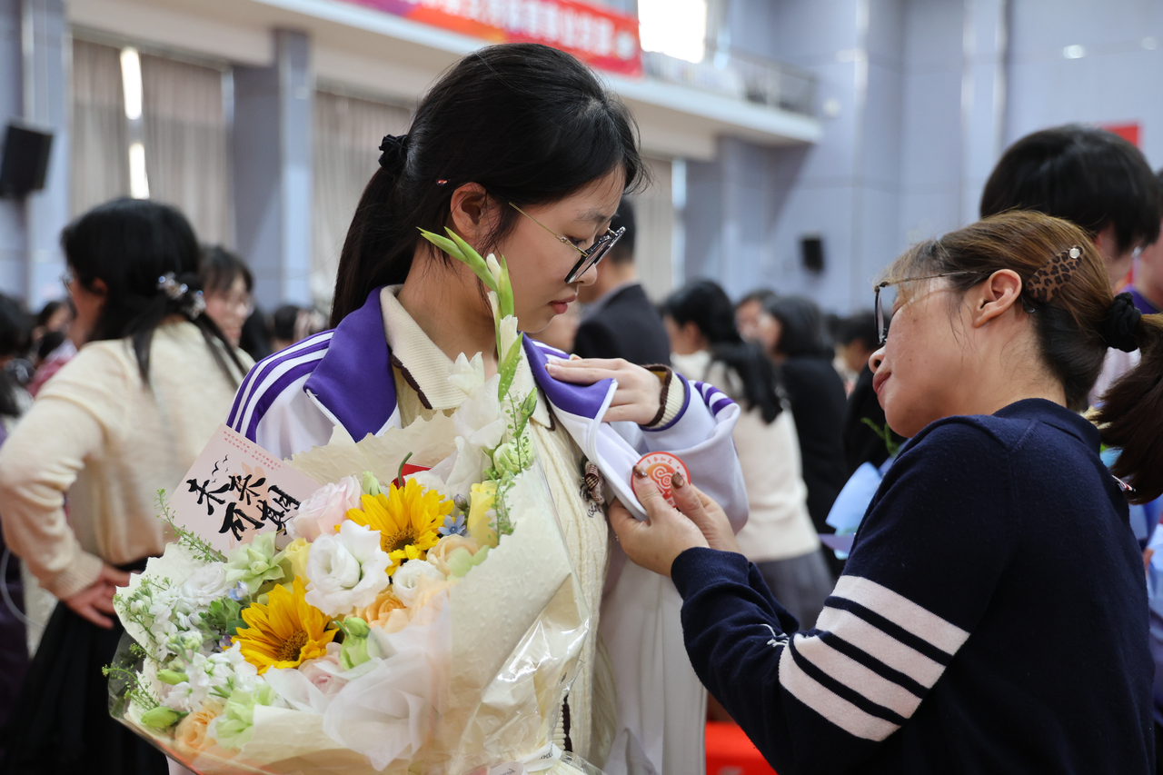 十八载同行,纸短情更长。在仪式后,家长们纷纷为学生们送上精心准备的成人纪念礼物,并为各自的孩子佩戴成人纪念徽章。“这一过程非常感动,感谢学校精心准备这样的活动,非常有意义。”在送完礼物后,家长林女士边看着与孩子的合影照边哽咽地说。