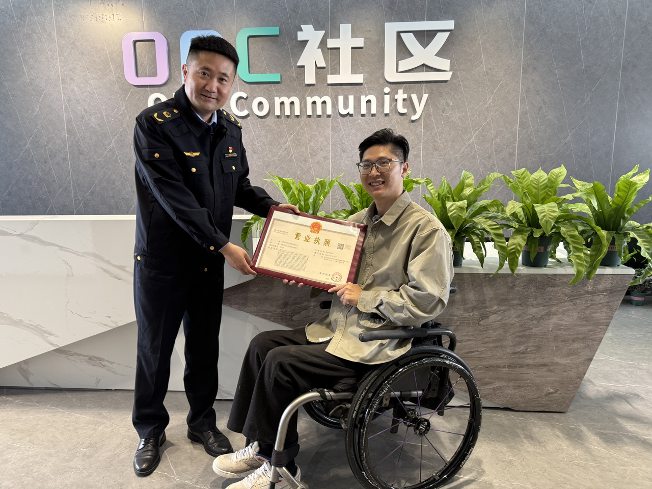 作为台州湾新区重点打造的科创走廊,创新一号大街近年来不断尝试创新模式、丰富创新载体。此次启用的OPC社区正是该大街科创场景运用的重要组成部分。何华杰这位高位截瘫却拥有24万抖音粉丝的本地青年,成为了“一人成军”创业故事的主角。“这是新风口,我要抓住机会。”半个月前他参加了全市AI技能培训,凭借优异表现被推荐入驻,主营AI宣传片、AI仿真人短剧制作,“注册手续社区全程代办,我只提供了身份证,3天就拿到了营业执照。”