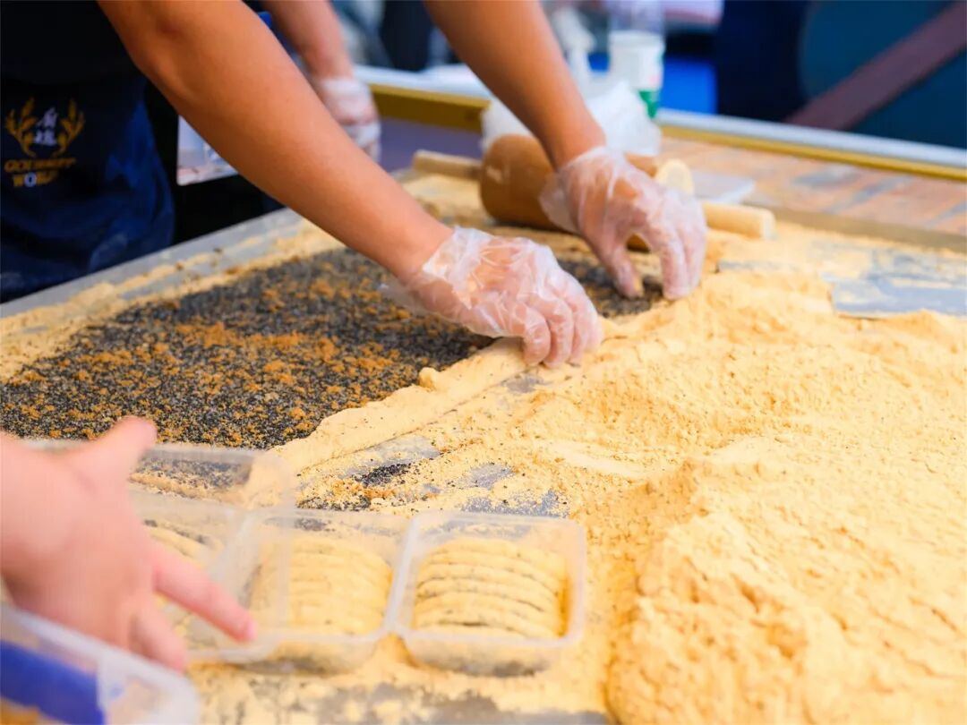台州糯叽叽非遗美食体验日每日开放,可亲手制作青团、炊圆、乌饭麻糍等传统小吃;现场更有非遗匠人手工打造51米超长乌饭麻糍,万人共享、免费品尝,同步举办申创“世界美食之都”万人签名活动,让美食与文化同频共振。