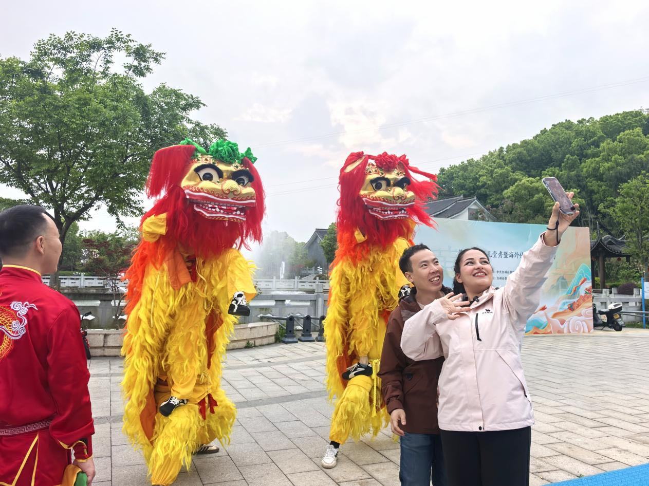 海外传播官与省级代表性非遗高台狮舞合照打卡