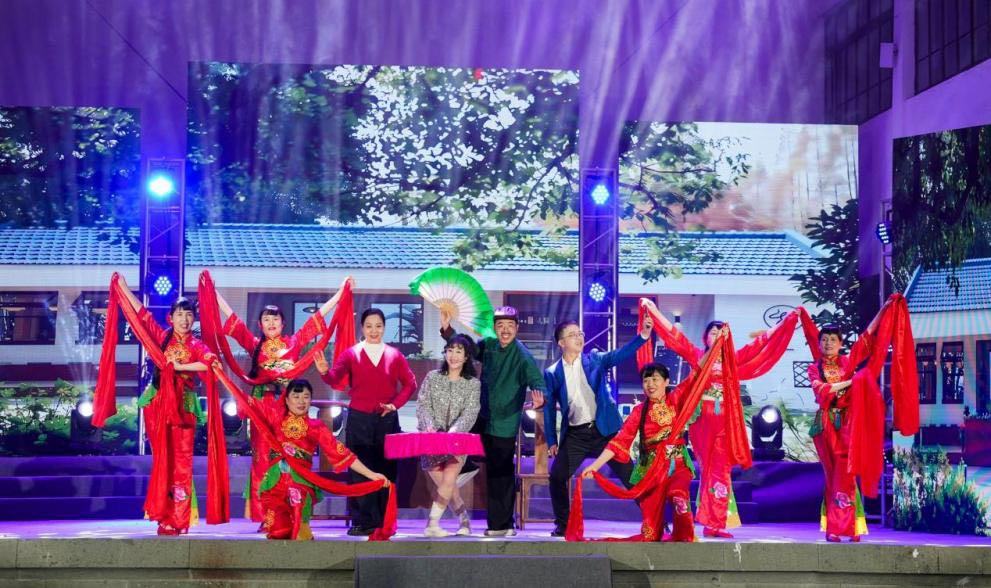 当晚,由村民自编、自演的乡村春日晚会热闹开场。戏曲《新编刘姥姥进黄城》、原创舞蹈《橘花》等一个接一个原汁原味的乡村文艺作品,让夫妇二人频频鼓掌、连连惊叹。