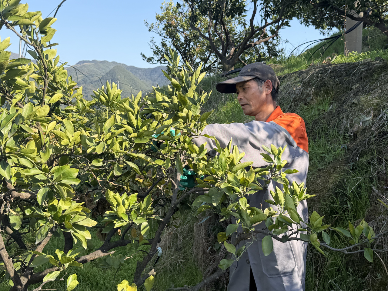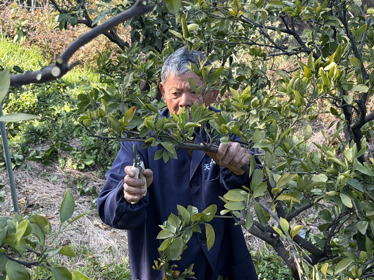 “趁着好天气抓紧剪枝,让树冠更通透,阳光充分照射橘树补充营养,助力果树健壮生长。”合作社工人卢善君说。