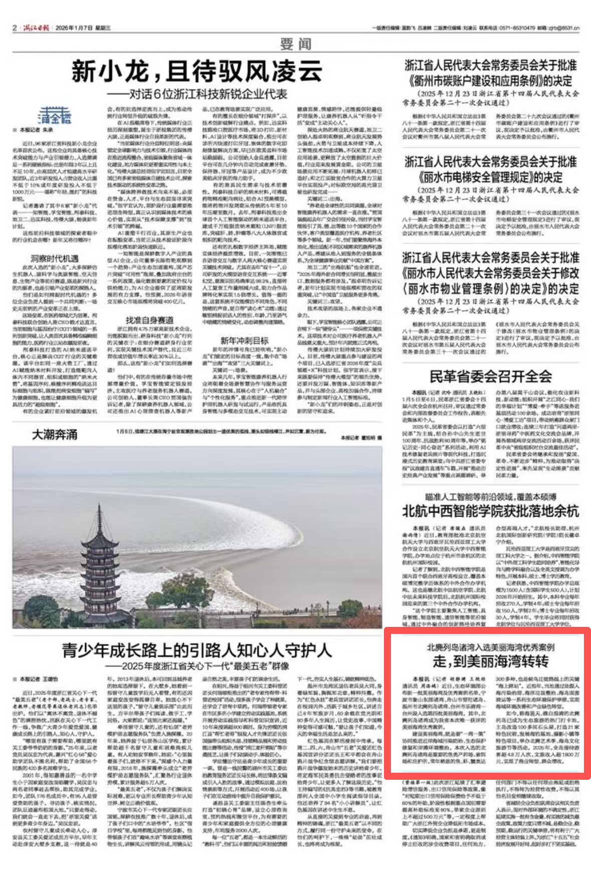 近日,生态环境部公布新一批美丽海湾及优秀案例名单,宁波市象山东部诸湾、舟山市普陀诸岛、温州市北麂列岛诸湾、台州市乐清湾—台州段入选第四批美丽海湾。其中,北麂列岛诸湾成为我省本次唯一获评的美丽海湾优秀案例。