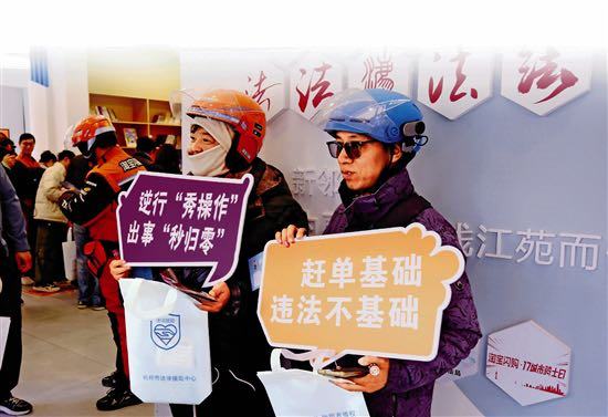 小哥们参与杭州市上城区四季青街道新就业群体党群服务中心举办的法制活动。