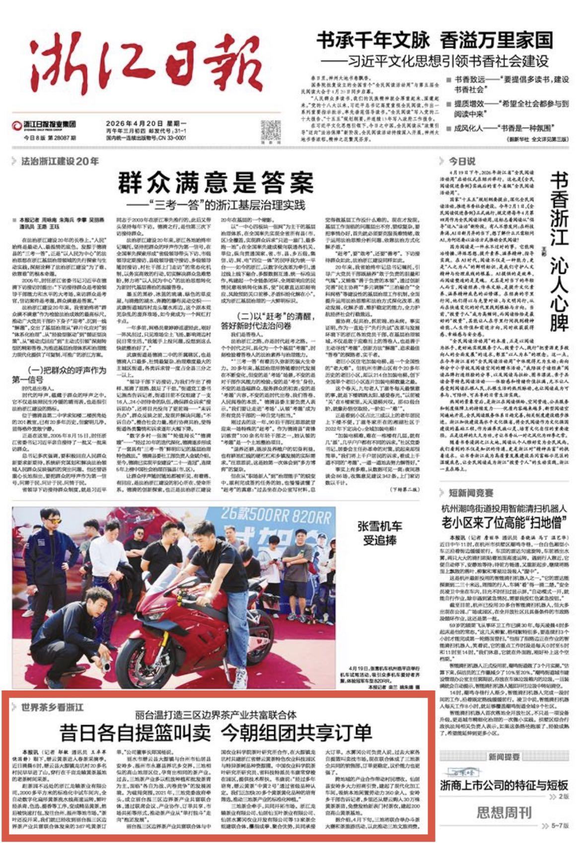 三地茶企牵手,共同开拓市场。浙江龙辕茶业有限公司、仙居仙玉叶茶业有限公司、仙居水雾冈农业开发有限公司等13家茶企组建联合体,攥指成拳、聚合优势,共同承接大订单。水雾冈公司负责人说,过去大家各自提篮叫卖找市场,现在联合体成了三地茶企共同的销售部,订单更稳定,议价能力也更强了。